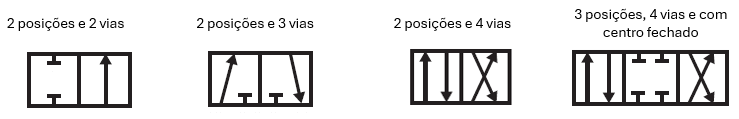 No tocante às válvulas, primeiramente vamos definir os conceitos de posições e vias. As conexões disponíveis para utilização ou direcionamento do ar comprimido são conhecidas como vias. O número de condições que a válvula pode assumir é conhecido como posições.