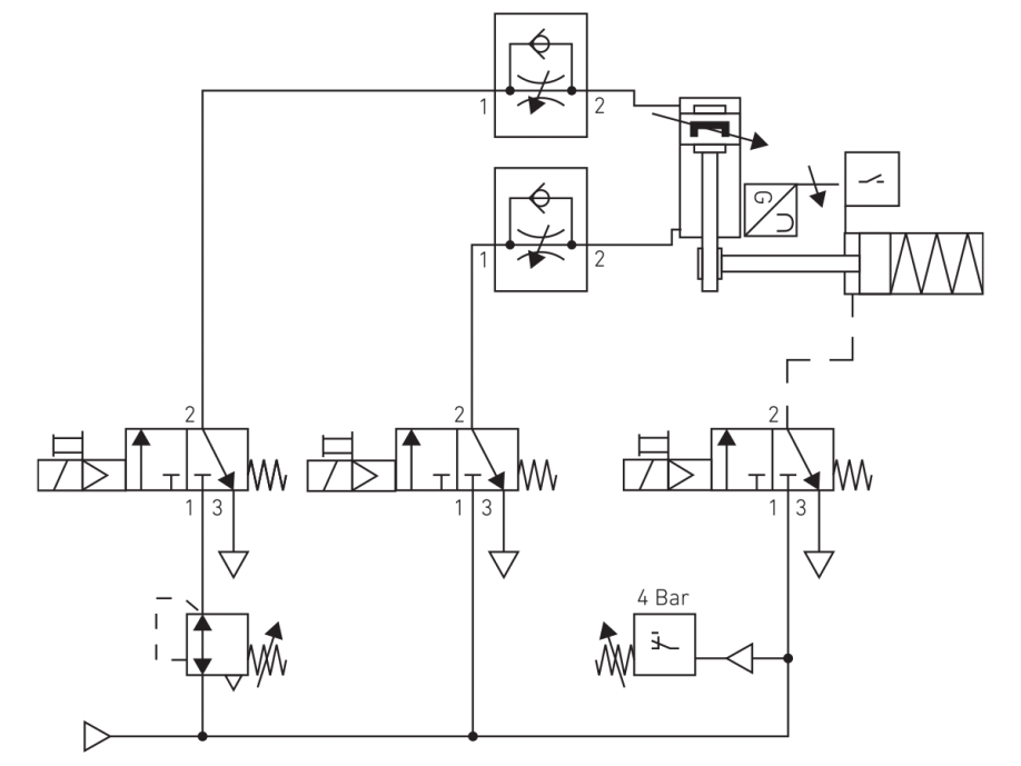 Válvula de Bloqueio: bloqueia e libera o sentido de ar comprimido, opcionalmente possibilita a liberação do ar para o sentido oposto.
